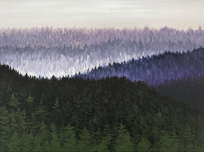 It was a bright sunny day on my first visit to what would become my favorite spot along the Appalachian Trail. I was prepared to paint a scene from the top of Max Patch in plein air so I was well equipped. I had my easel, watercolor paints, watercolor paper, brushes, a bottle of drinking water, paper towels, and every conceivable thing an artist would need on site...except for an umbrella! Just as I got organized and started my drawing, a curtain of mist began closing in on the field of Queen Anne’s Lace. The effect was stunning, despite that everything got soaked with rain. I brought home several loose and watery studies and began painting in my studio the next day. I can still hear the stalks of grass in the wind while blossoms of lace dance against a palette of evergreens.