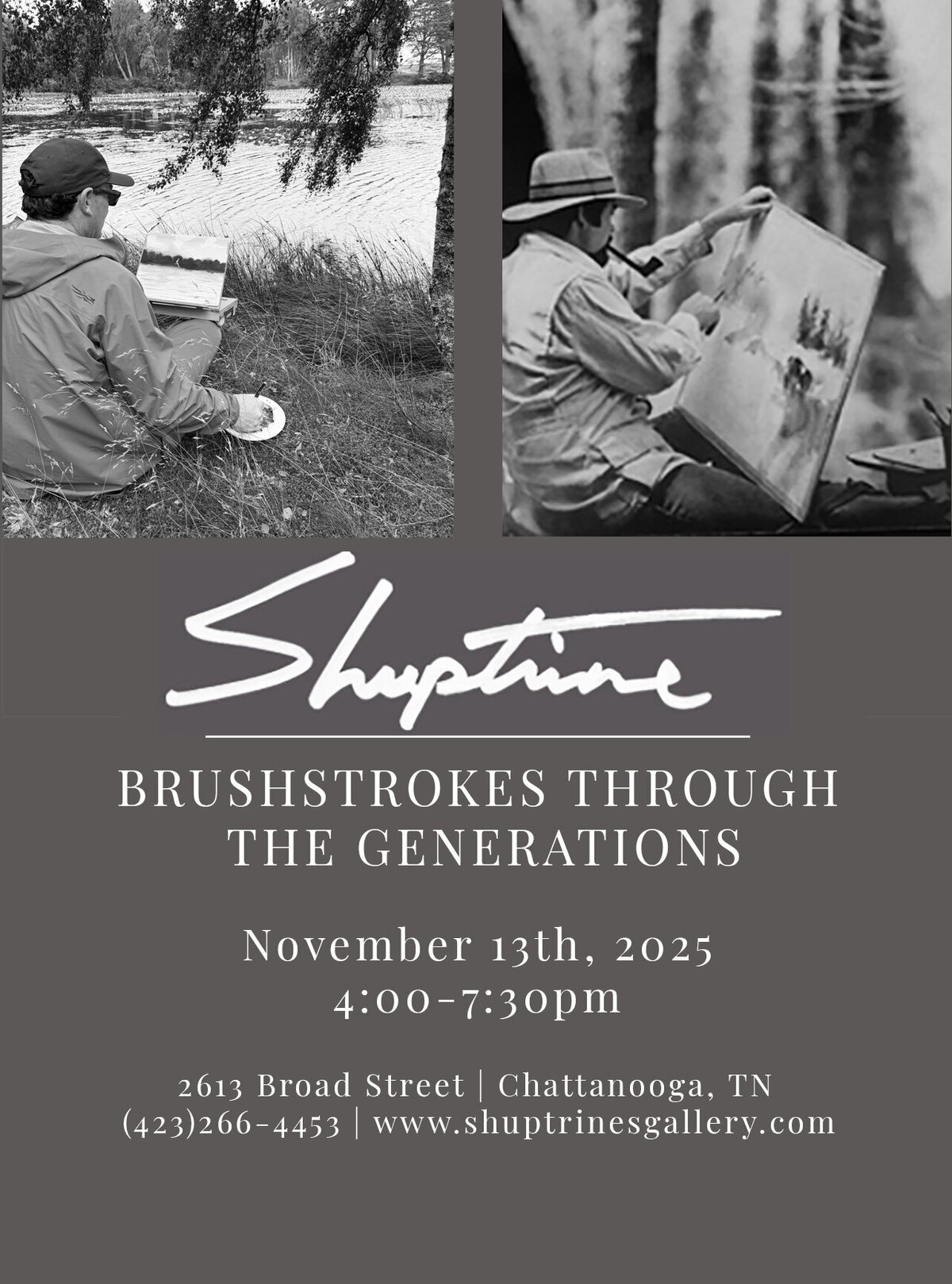 For any questions, or to schedule your lesson, please contact the gallery at (423) 266-4453 or TheGallery@Shuptrines.com. To join our artist email list, please send us a message with SUBSCRIBE in the subject line.