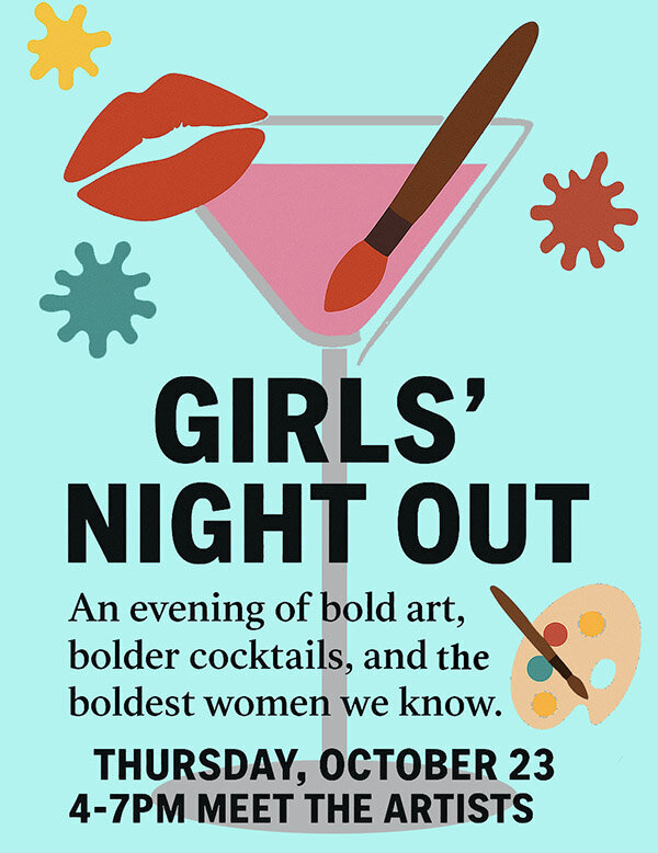 Join us! Shuptrine’s Gallery’s “Girls Just Wanna Have Fun” Girls’ Night Out Open House! Thursday, October 23, 2025! We are open until 7pm so come meet the artists and enjoy cocktails beginning at 4pm!